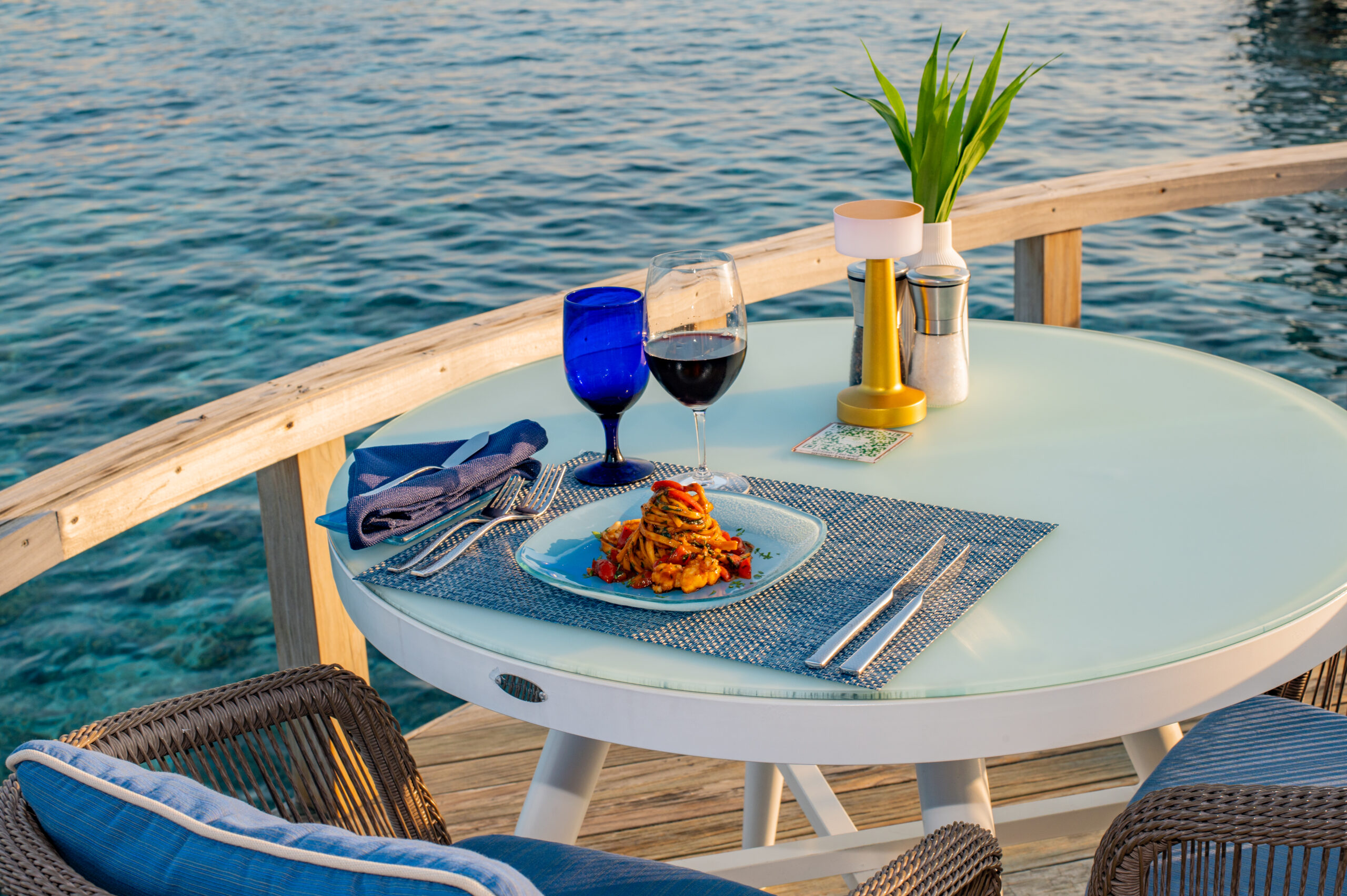 Suspended directly above the sparkling turquoise lagoon, Mediterraneo is an overwater sanctuary at Emerald Faarufushi Resort & Spa dedicated to refined Mediterranean gastronomy and timeless romance.