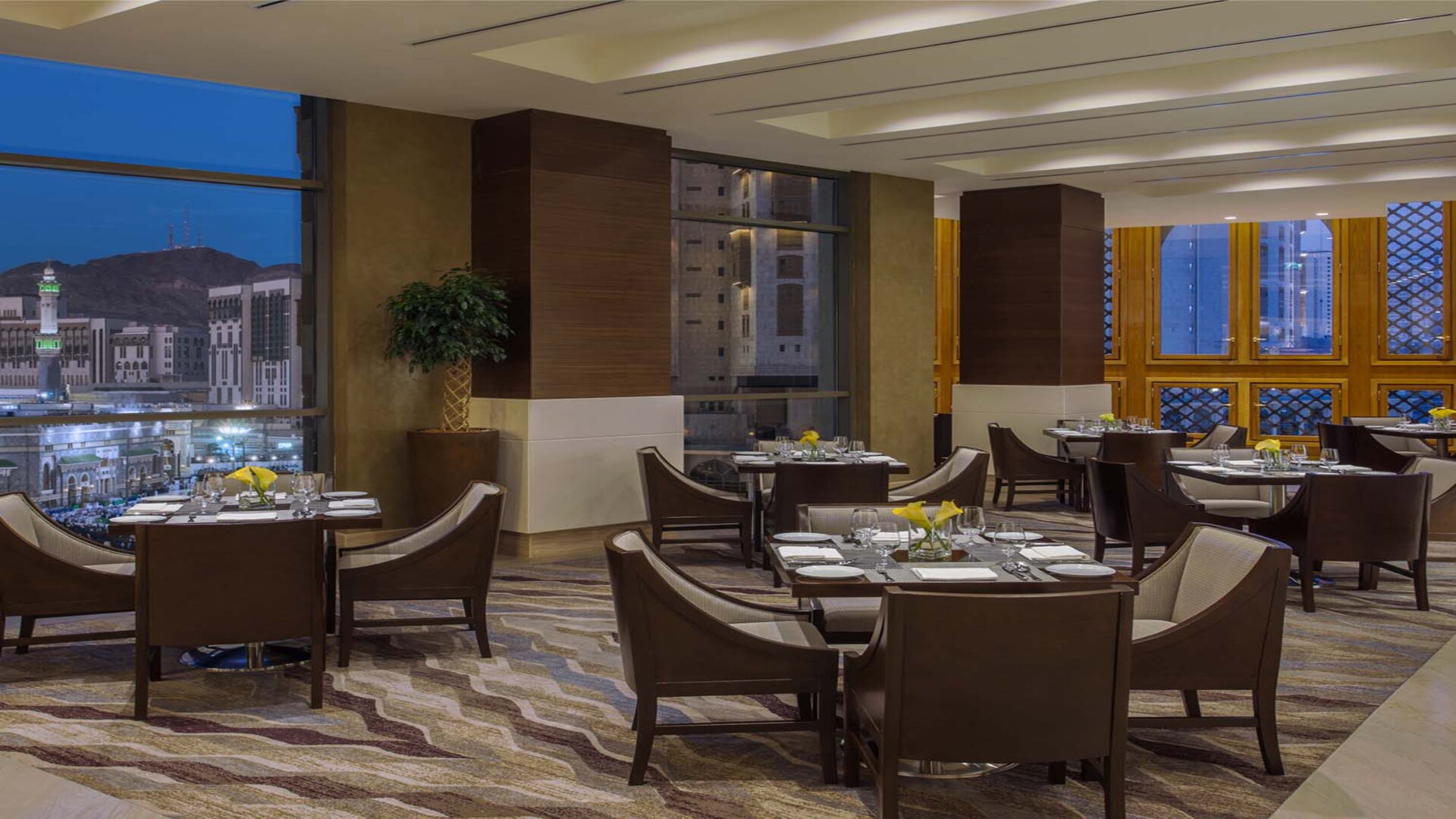 The seating provides a large array and selection of traditional and local favorites in the heart of Makkah. The Oasis is open for breakfast, lunch and dinner offering the a la carte menu and buffet.