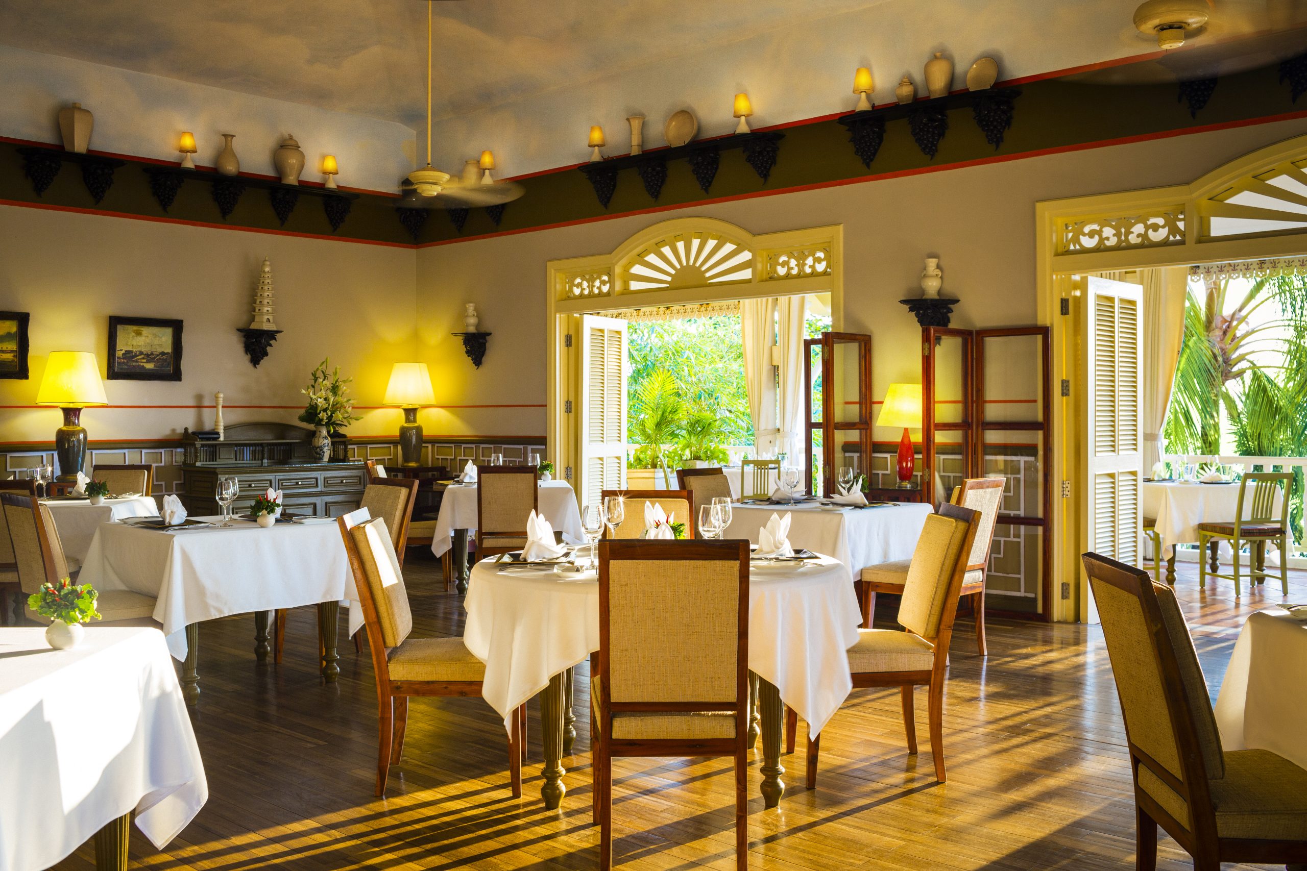 Fragrant Phú Quốc pepper and the island's prized tangy fish sauce inspire an artful blend of authentic local and French cuisine. Madame Thanh's nuoc mom infuses more than a century of royal history into your Trio of Spring Rolls, carefully prepared by their award-winning chefs.